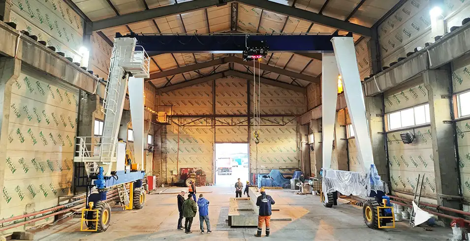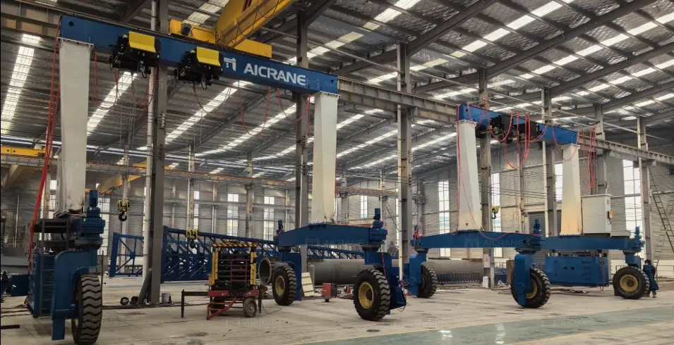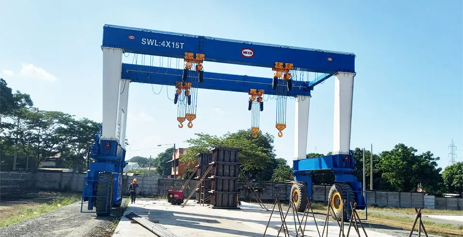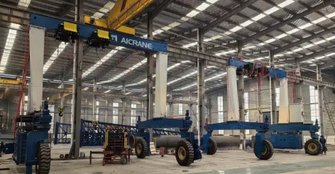 تُستخدم الرافعات الجسرية بإطارات مطاطية عادةً لمناولة المواد الثقيلة بشكل مرن. ويجد هذا النوع من المعدات تطبيقاته في الصناعات الميكانيكية، وإنشاء البنية التحتية، وصناعة الصلب، وتصنيع أبراج توربينات الرياح، وبناء المساكن المعيارية