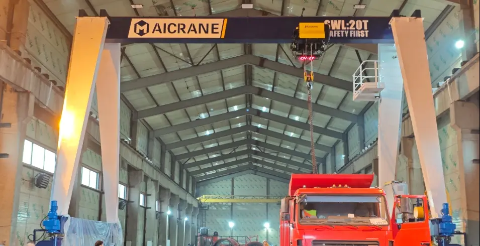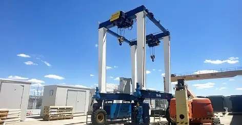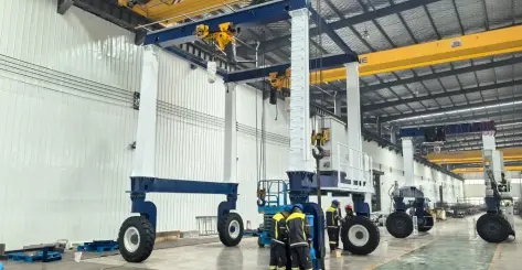قدّمنا رافعة جسرية مزدوجة العارضة بإطارات مطاطية من طراز مخصصة (بامتداد 5.5 متر وارتفاع رفع 7.1 متر)، وتتميز